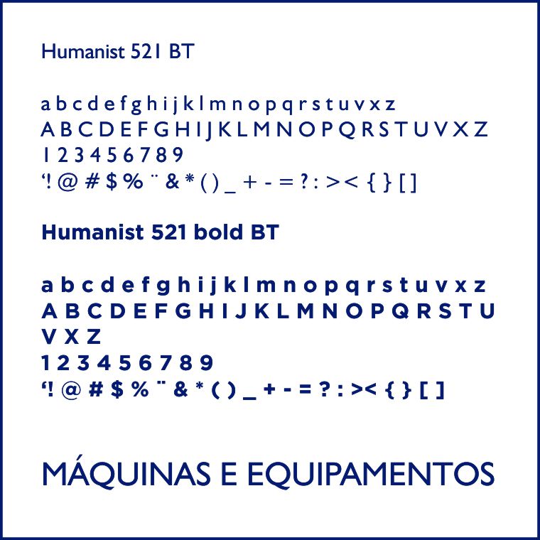 O tipo de fonte utilizada para a composição das mensagens institucionais da L3 Rental pertencem à família de tipos Humanist, em duas versões específicas: Humanist 521 BT e 521 bold BT.